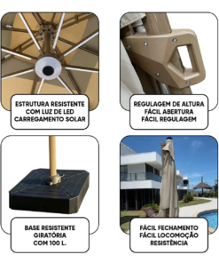 Ombrelone Guarda Sol Gold Led Alumínio 3,0 x 3,0 C/ Base em 100 L
