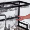 - Versátil e espaçoso, com diferentes espaços para pratos, facas, frutas, legumes, tábua de cortar, detergente, talheres e mais.