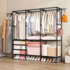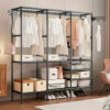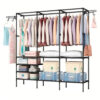 Organize seu ambiente com elegância usando o roupeiro Decontem de metal aberto. Equipado com três cabideiros e oito prateleiras em tecido, é a solução ideal para armazenar roupas, sapatos, acessórios e até roupas de cama. Robusto, leve e fácil de montar, ele combina perfeitamente em dormitórios, home offices, lavanderias ou salas.