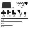 Capacidade de carga: 14 kg por barra para cabides; 11 kg por prateleira lateral